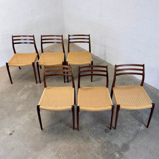 J.L. Møllers Møbelfabrik Set of 6 Rosewood Model 78 Chairs Designed by N.O. Møller - #A1781