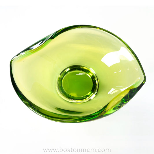 Italian Murano Art Glass Green Bowl, Possibly Sommerso