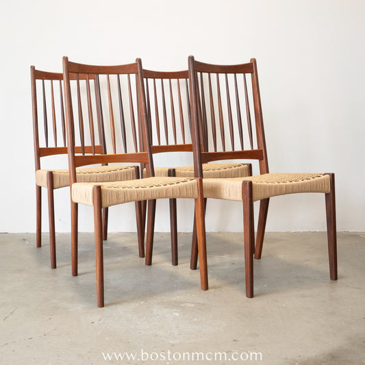 Mogens Kold Set of 4 Danish Teak Dining Chairs with Newly Woven Danish Cord Seats - #A50