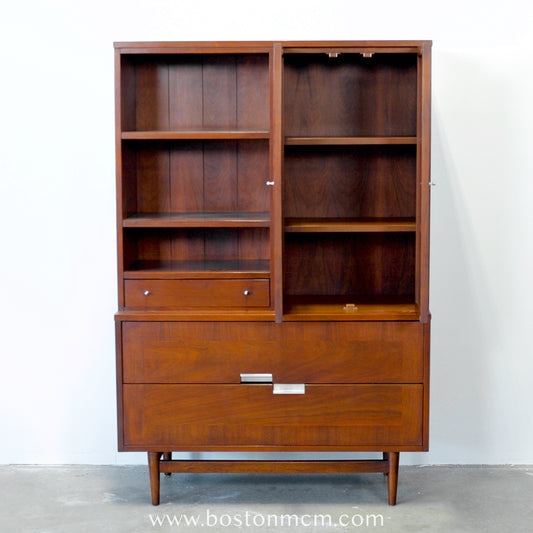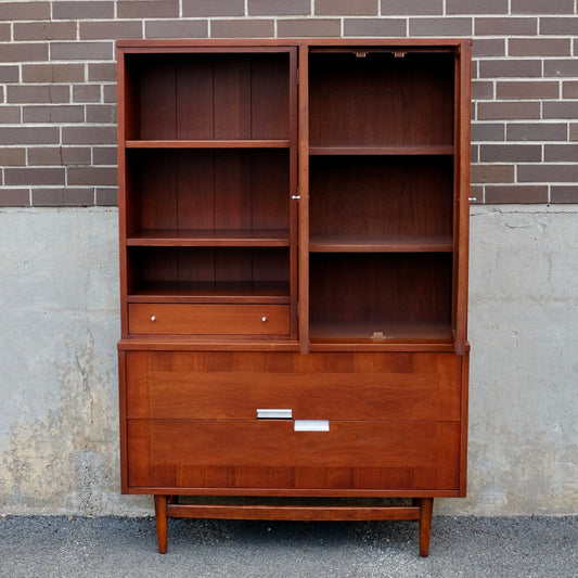 American of Martinsville "Accord" Walnut & Cane Hutch / China Cabinet