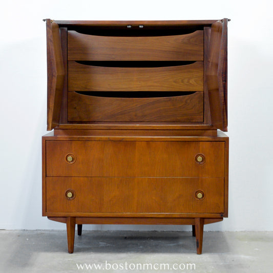 American of Martinsville "Harlequin" Walnut Tall Dresser / Gentleman's Chest