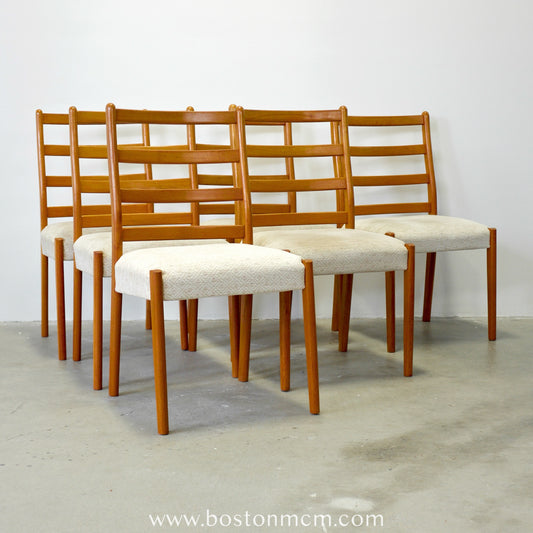 Danish Teak Ladder Back Set of 6 Dining Chairs - #A43