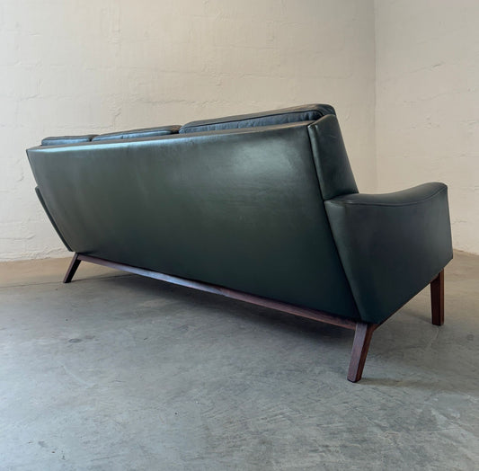 Danish Sofa in Dark Green Leather with Solid Rosewood Legs - #A1576