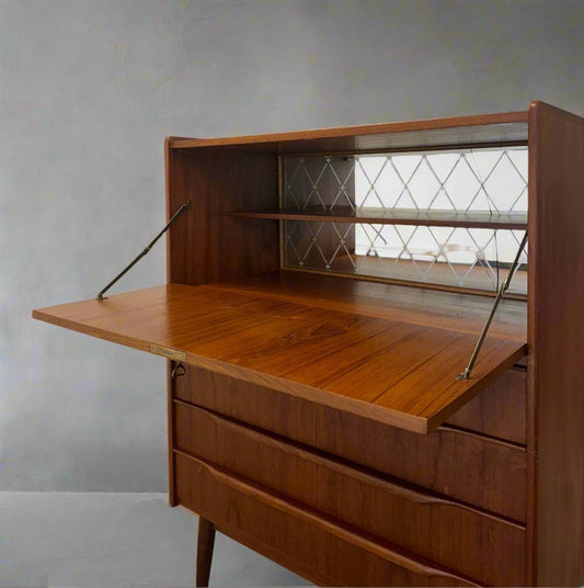 Danish Teak Dresser / Liquor Cabinet with Drop-Down Storage - #A1642