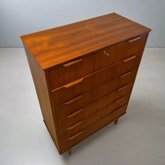 Danish Teak Six Drawer Tall Dresser - #A1646