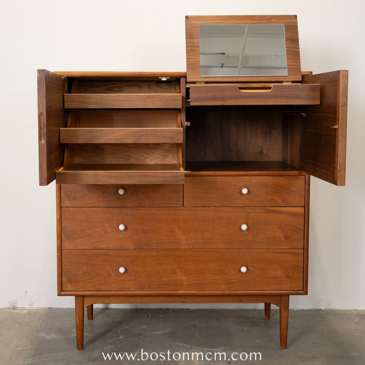 Drexel "Declaration" Walnut Tall Dresser / Chest with Built-in Mirror / Vanity - #A1478