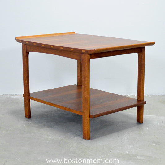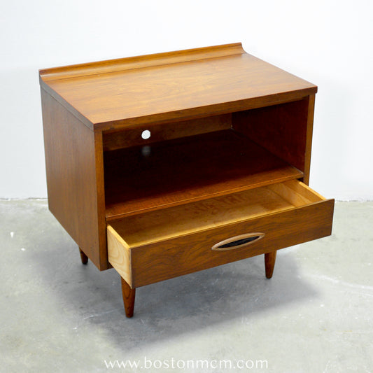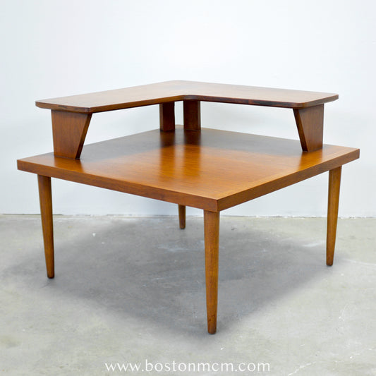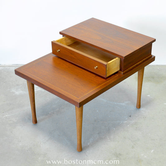 American of Martinsville Walnut Step Table / Lamp Table with Drawer