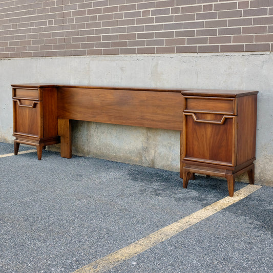 American of Martinsville Walnut X-Design Queen Headboard with Built-In Nightstands Designed by Merton Gershun