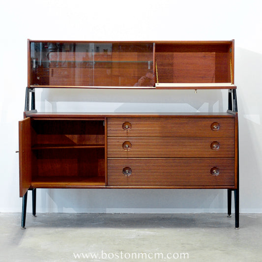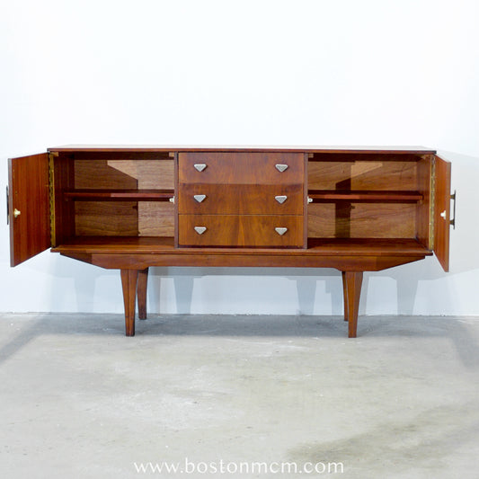 British Small Credenza with Metal Handles and Curved Front