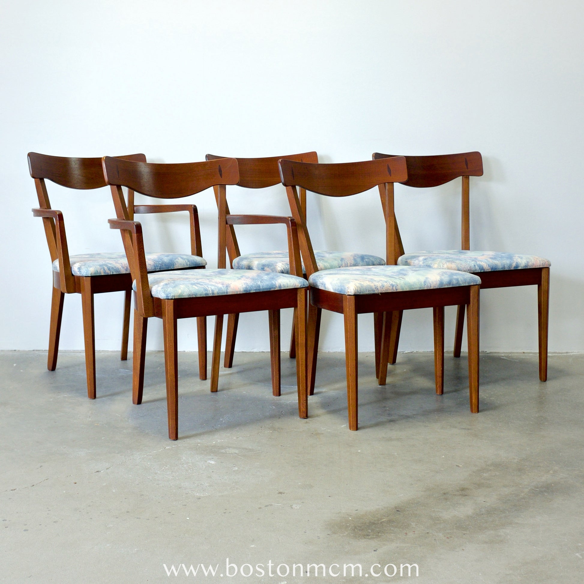 American of Martinsville "Dania II" Set of 5 Walnut & Rosewood Dining Chairs