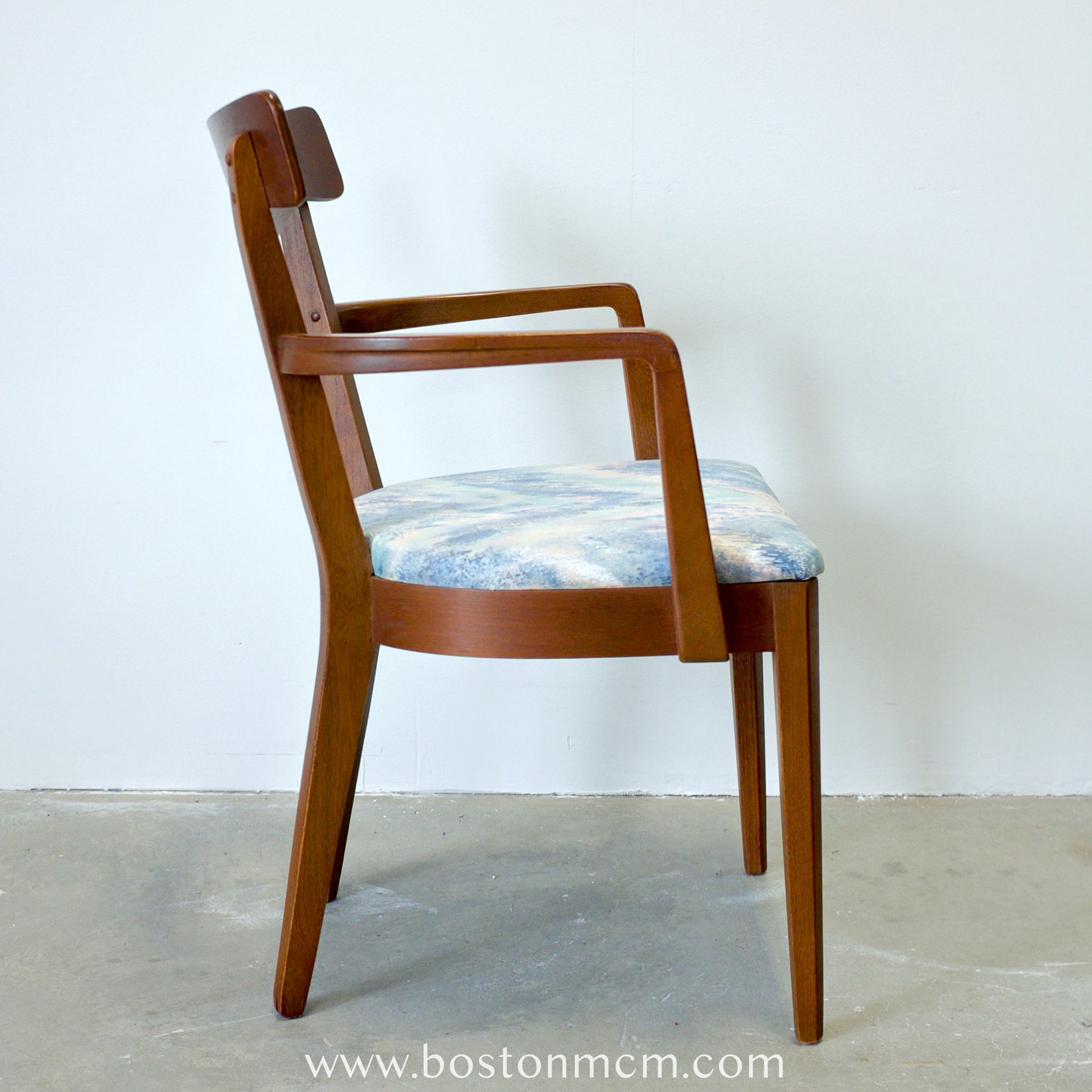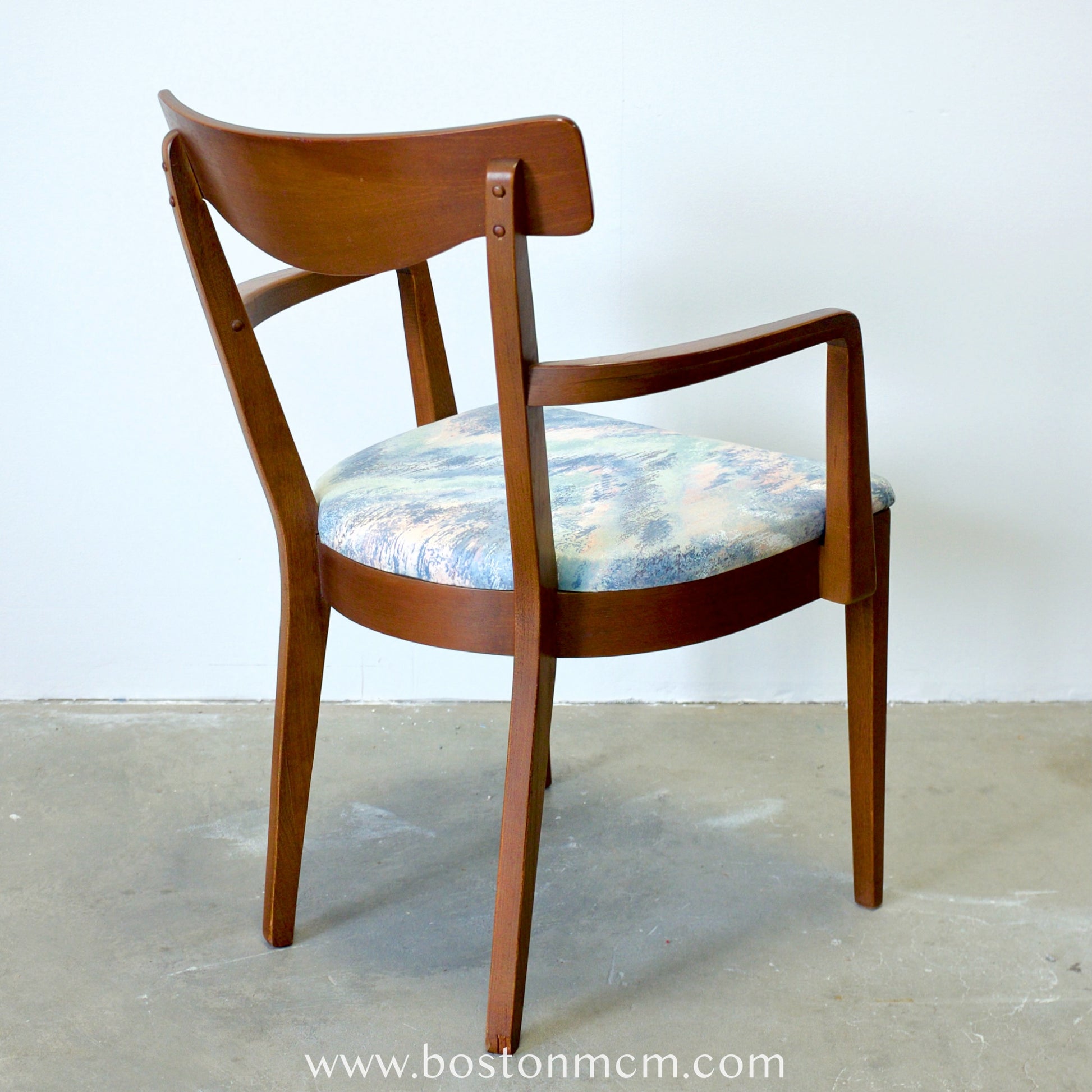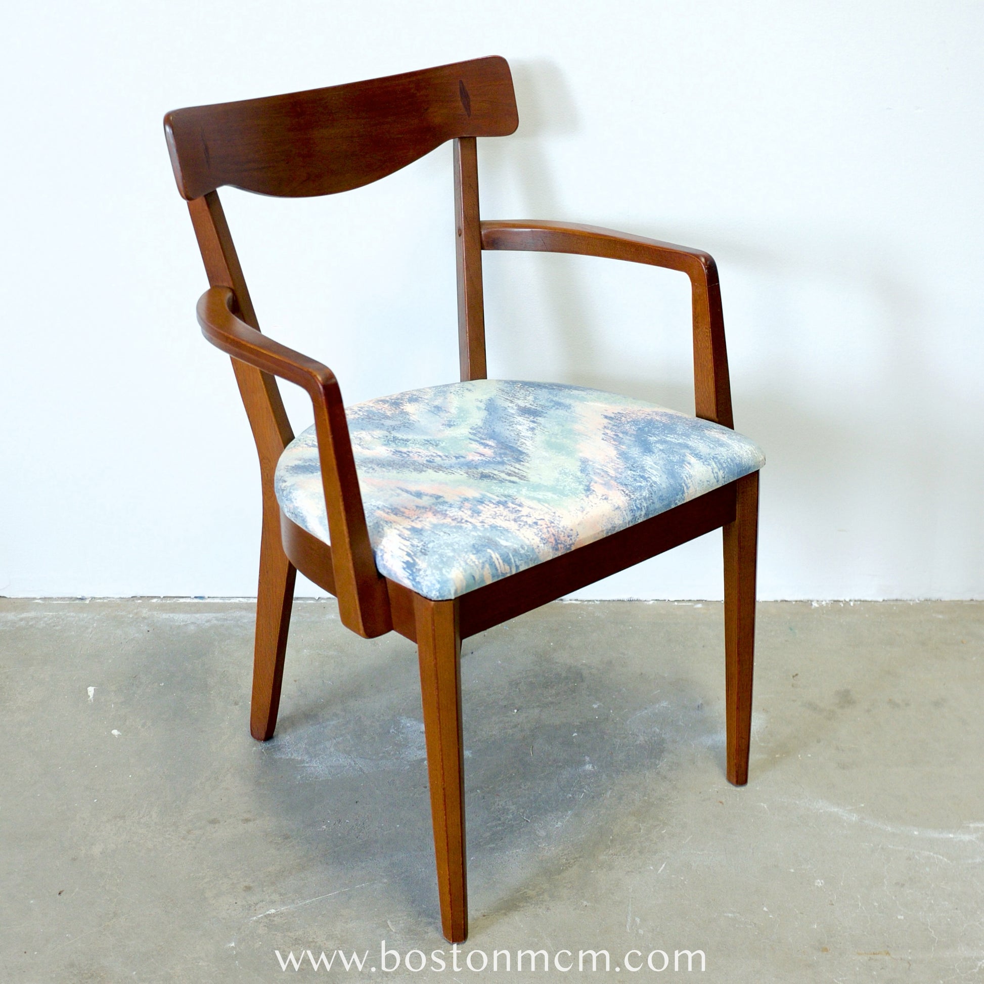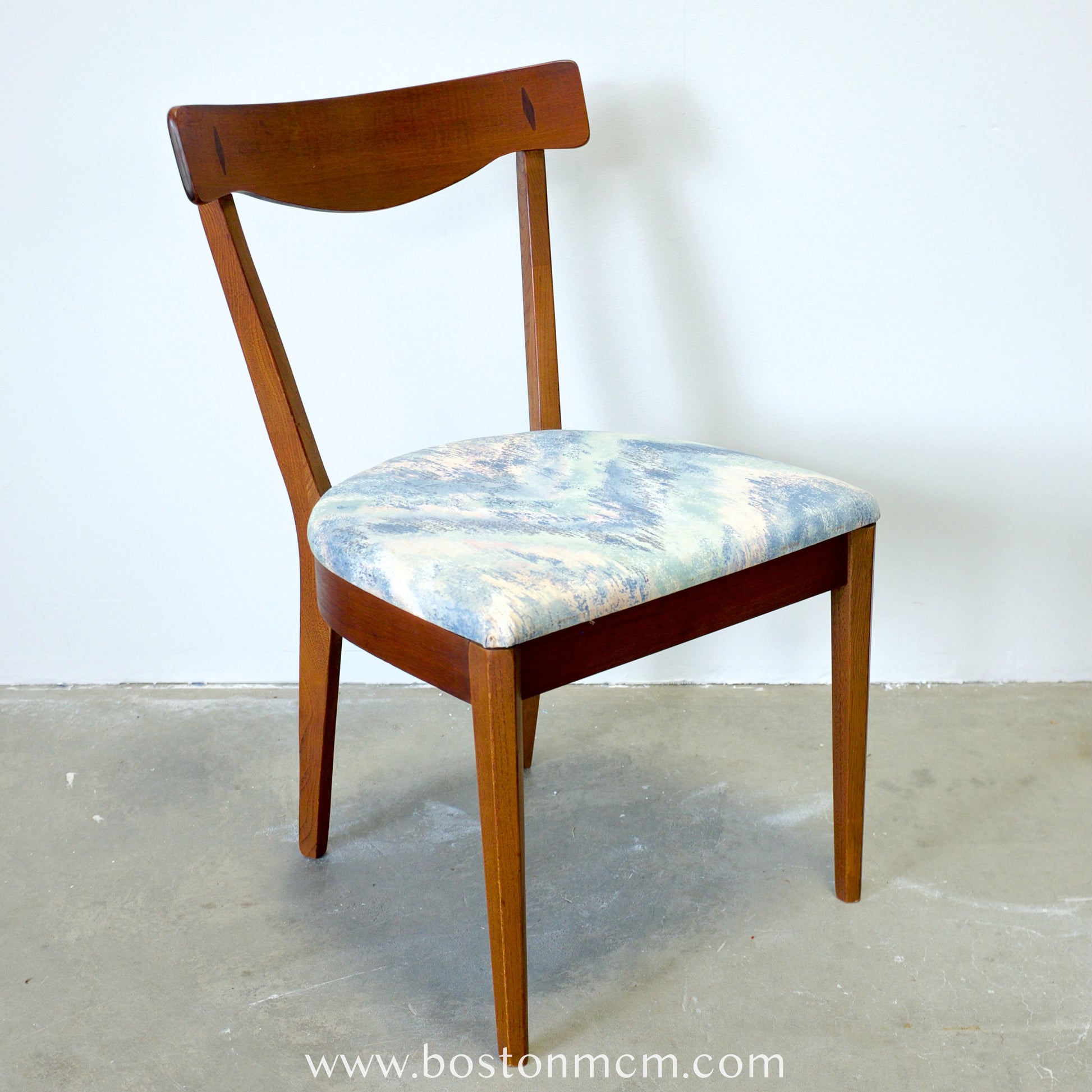 Details: Merton Gershun designed several famous lines for American of Martinsville and was well-known in the design world. This piece is from the second iteration of “Dania” and features rosewood inlays on the chair backs. We located and scanned the complete catalog, it is out our website.