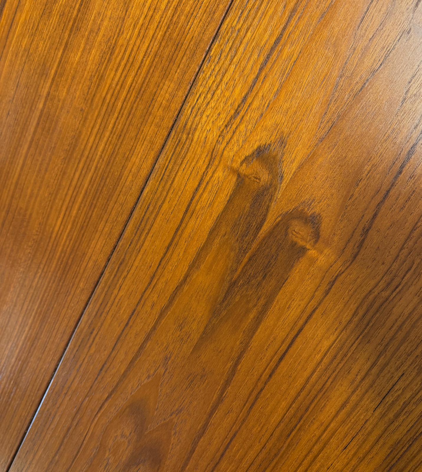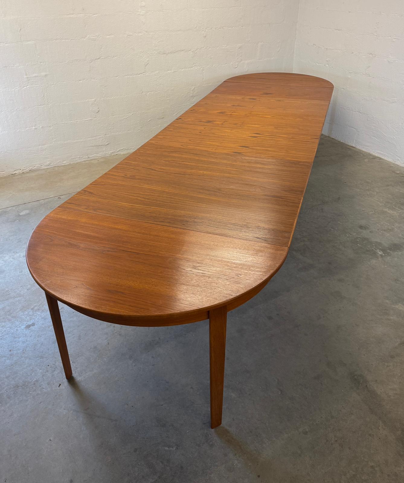 Details: This is by far the largest dining table we’ve ever seen! Three leaves is somewhat common but we are convinced this was likely a custom order and was designed by Henning Kjaernulf. An extra leg provides stability.