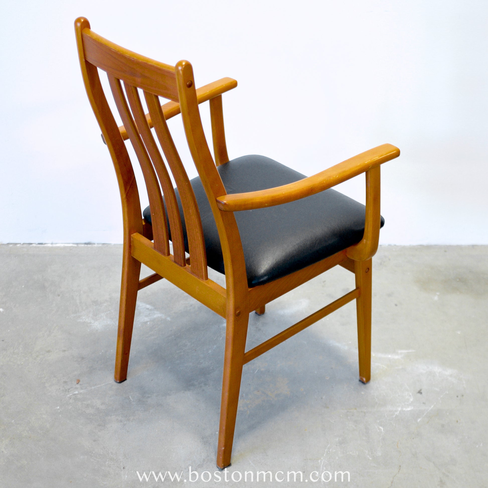 Details: While we do not know the maker for this chair, it is from Denmark and is evocative of many popular designs. It was likely made for export to the US. We have had it newly upholstered with black vinyl.