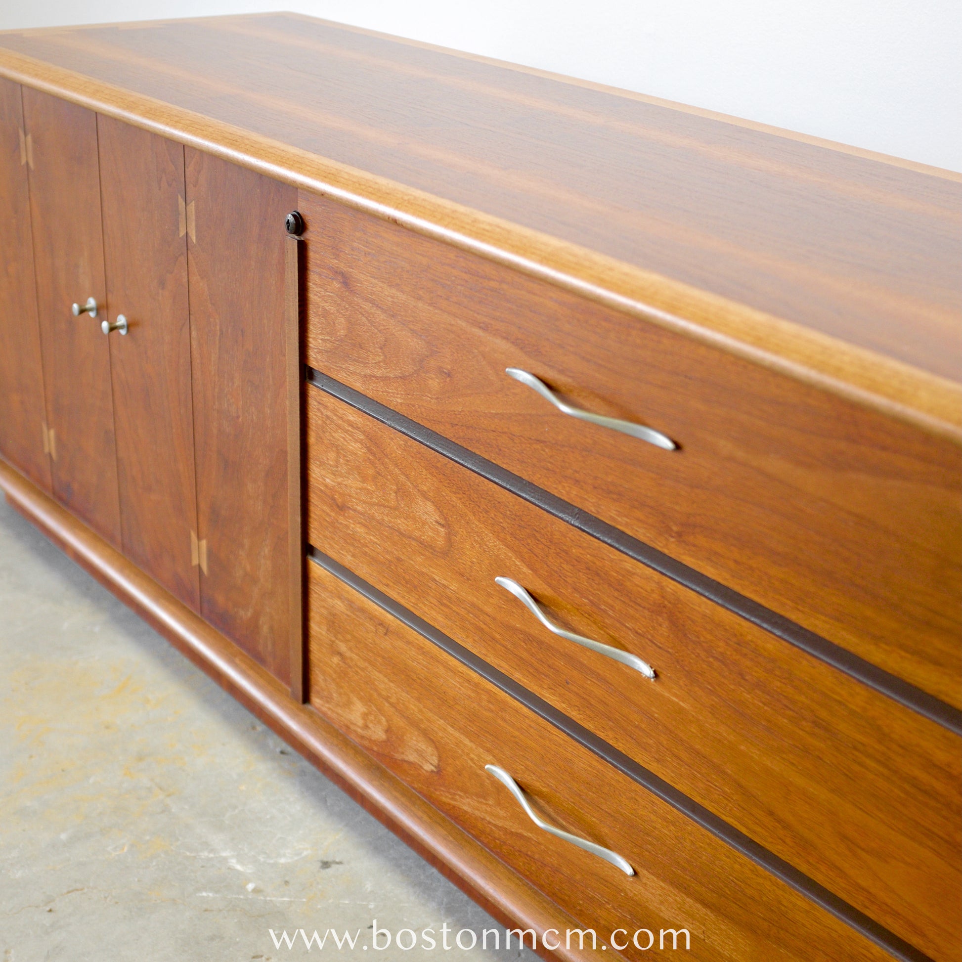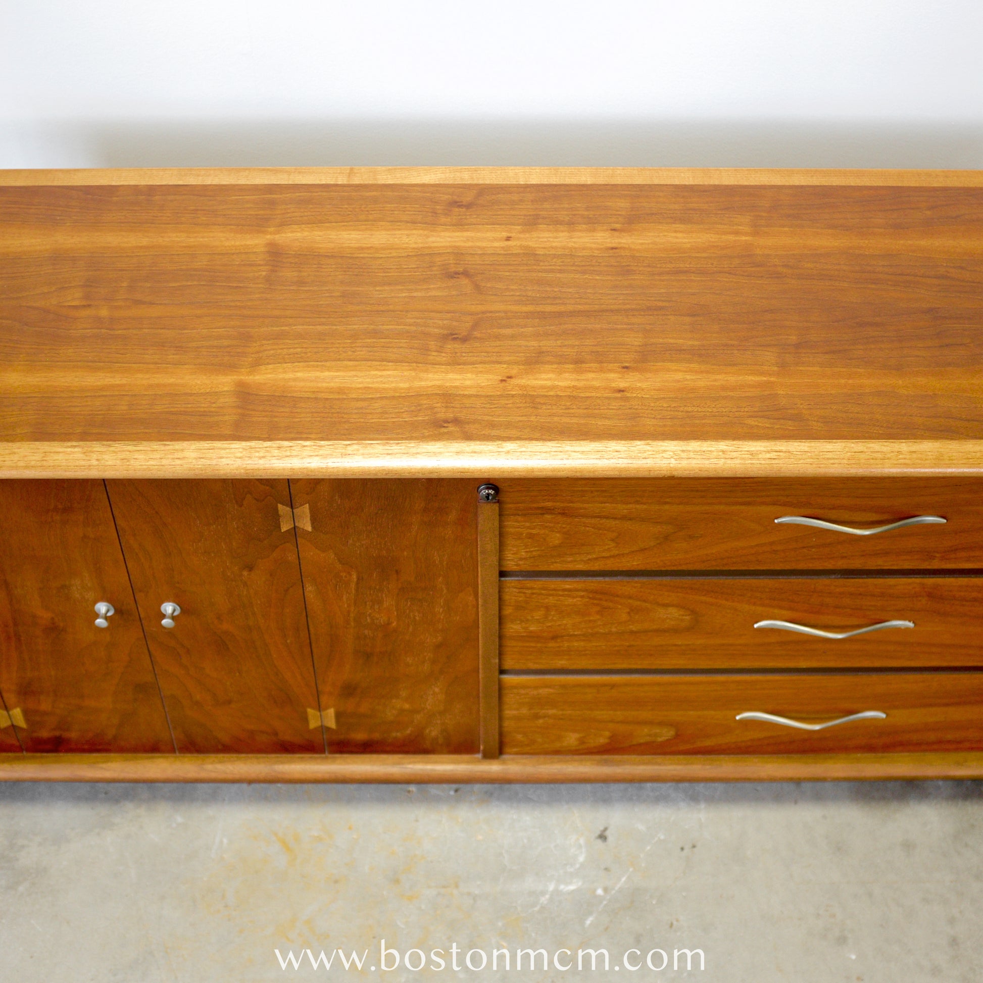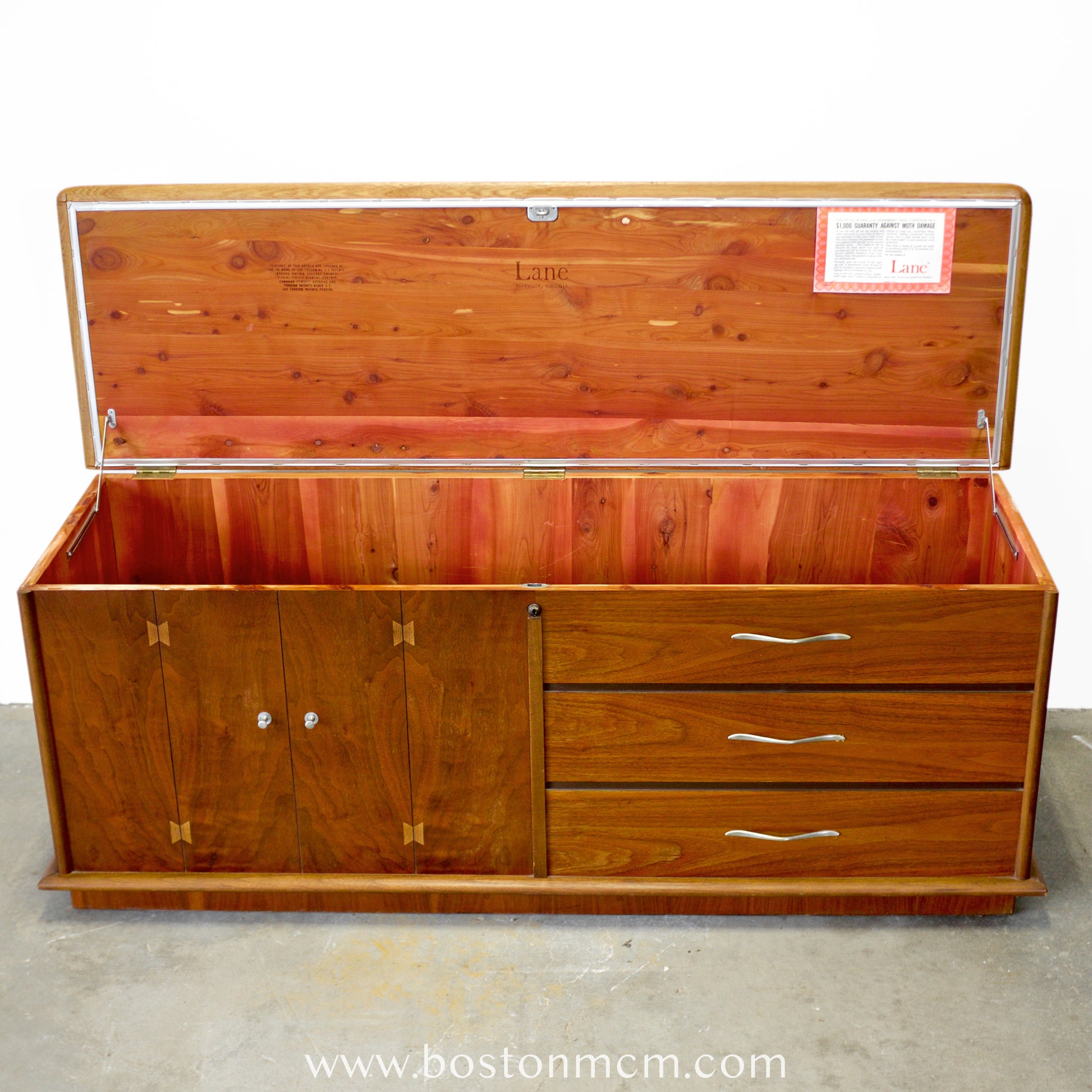 Details: Lane sold over 100 million cedar chests from its founding in 1912 until the 1980s. At one point ubiquitous, they were making dozens of variations in the 50s and 60s. Starting in the mid-50s, they started producing whole lines of furniture in addition to their cedar chests. The “Acclaim” line was designed by Dutchman Andre Bus, and is quite collectible with a loyal following. See our website for more information about this line!