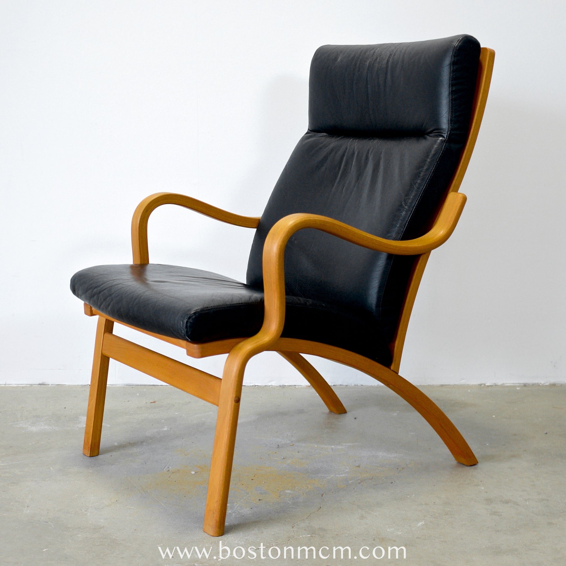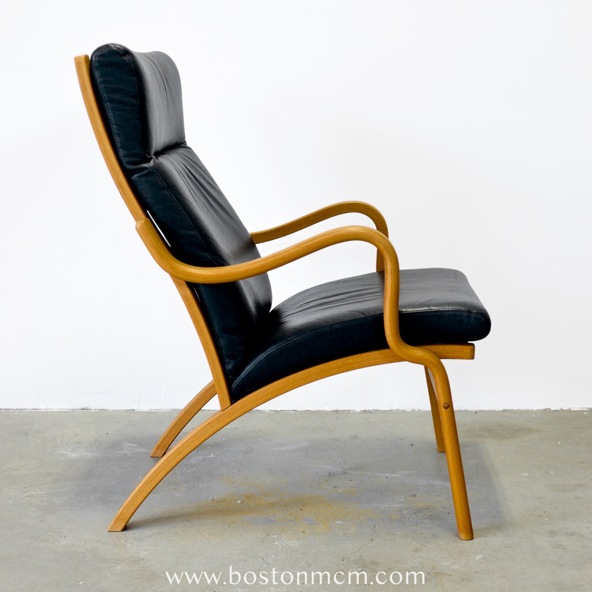 Stouby Bentwood Beech Armchair with Black Leather - #A1825